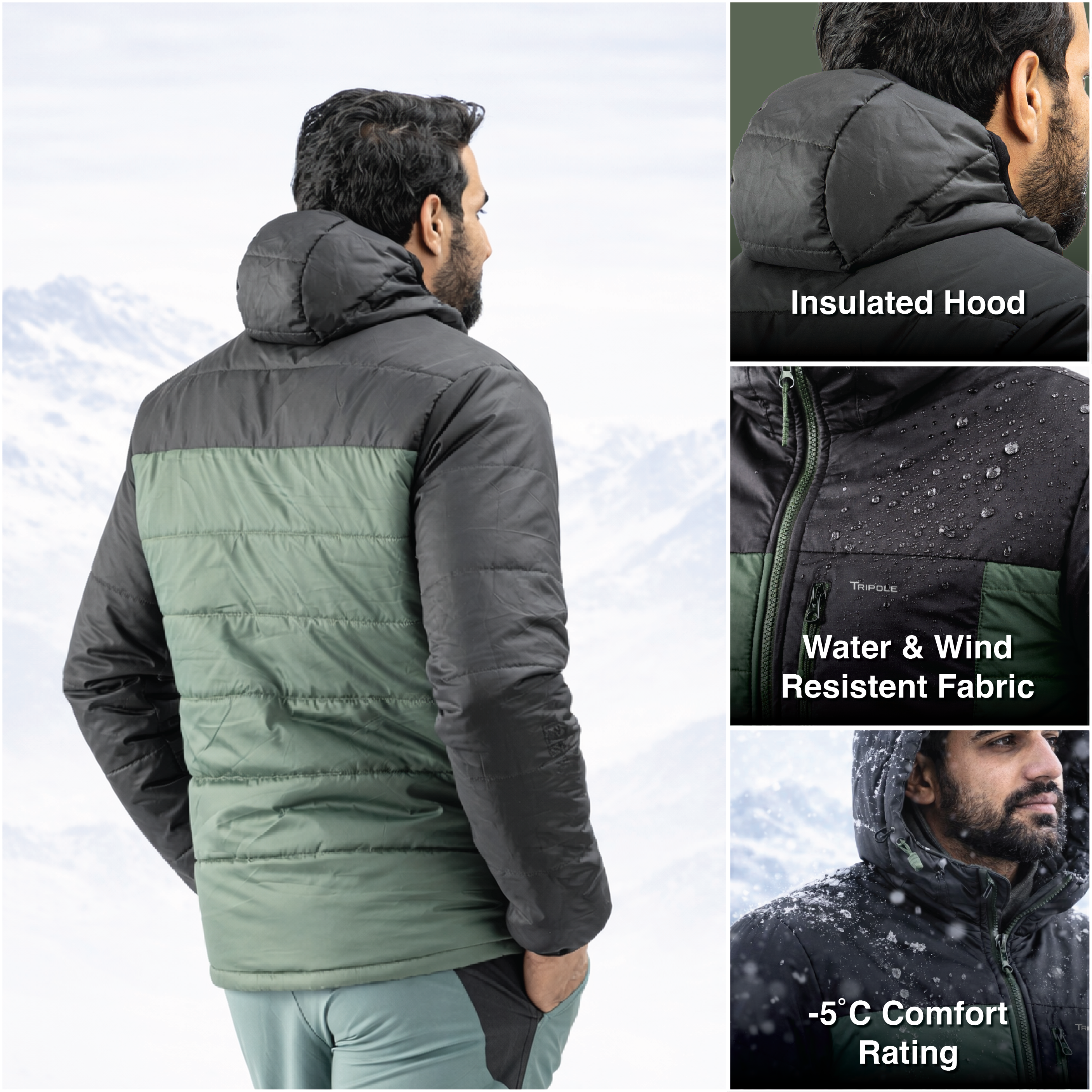 Tripole Boreal Winter and Snow Jacket | Water Repellent Hooded Insulated Jacket for Trekking, Hiking & Travel | Minus 5 Degree Comfort