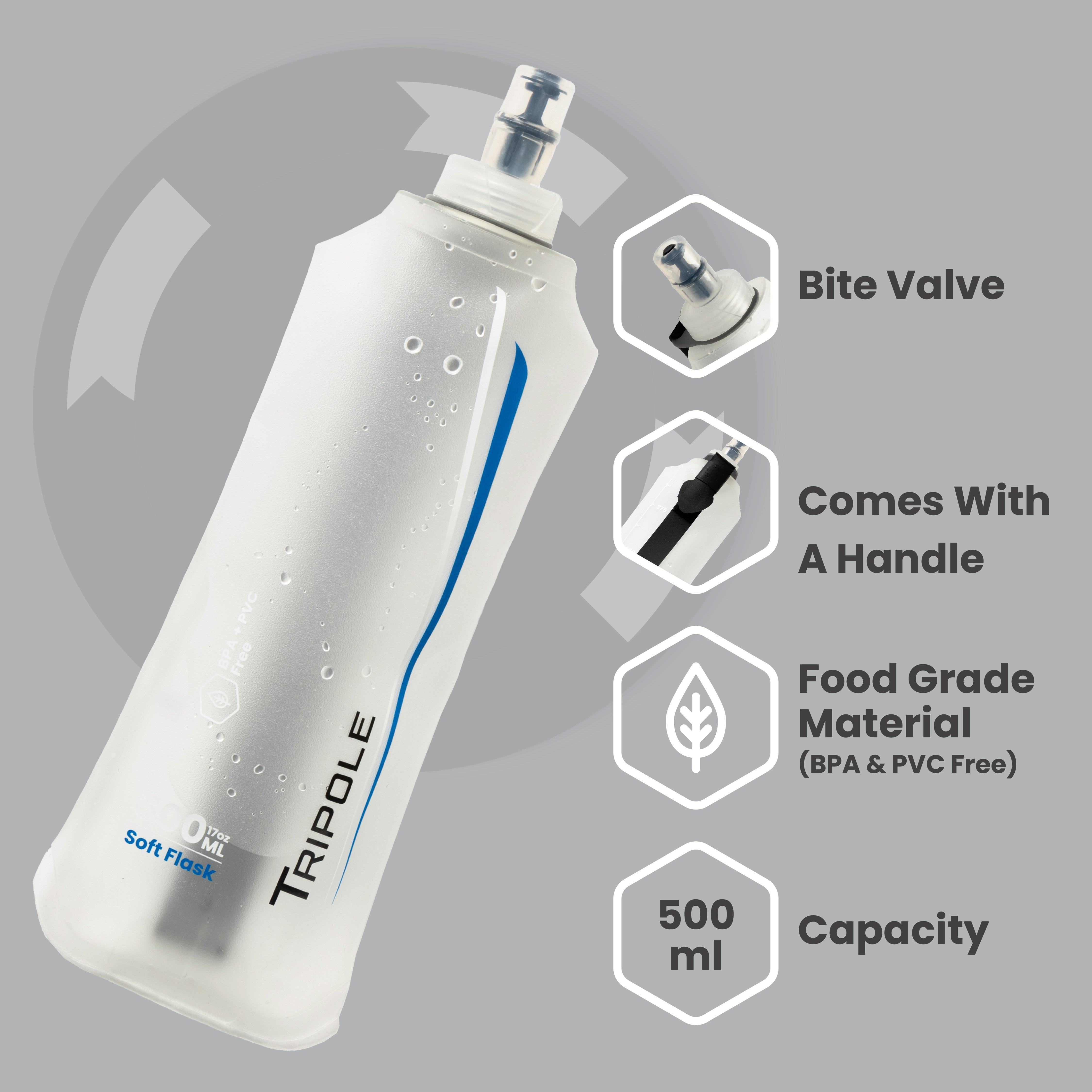 Hydration & Water Soft Flask for Running and Cycling with Handle Strap | 500 mL | White