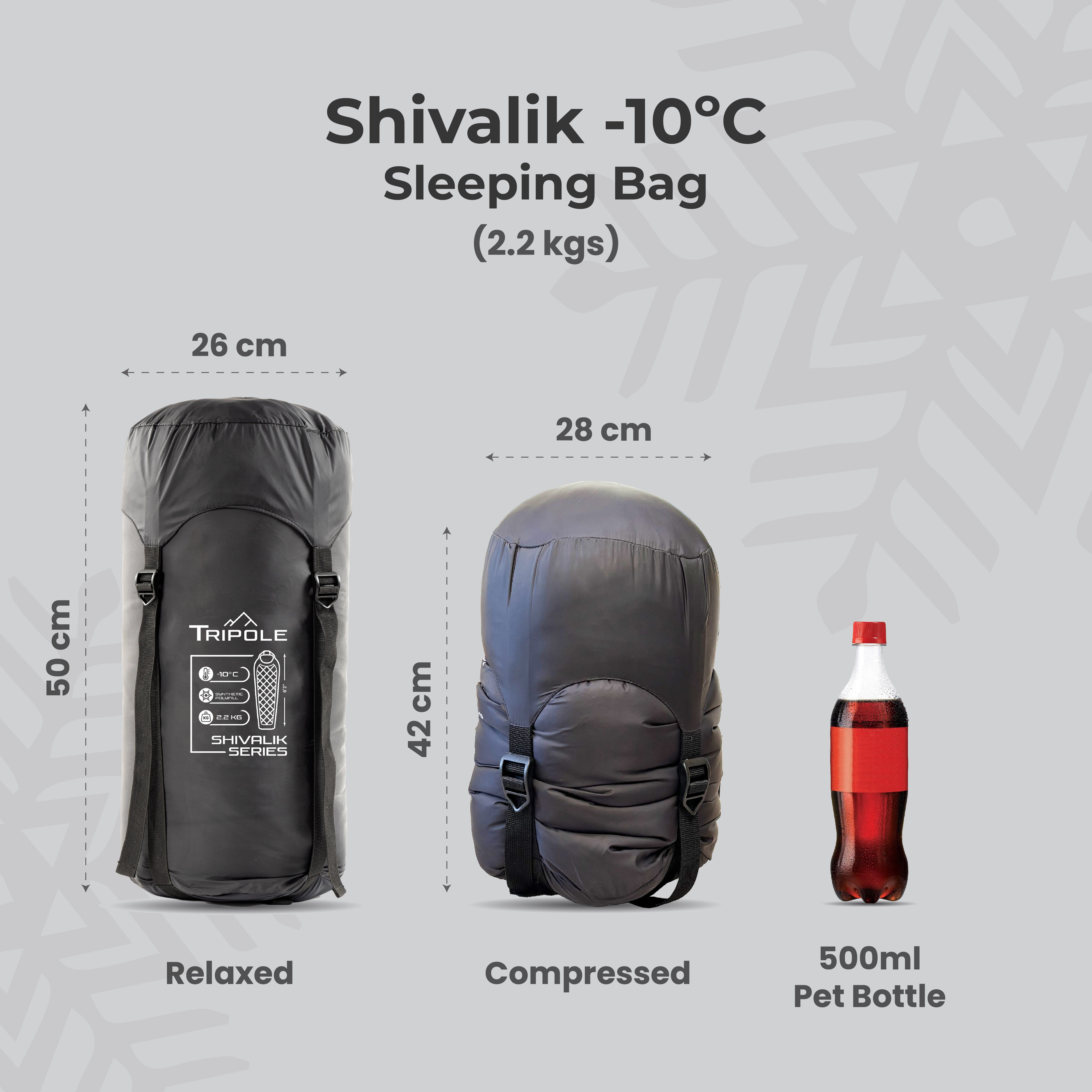 Tripole Shivalik Indoor and Outdoor Sleeping Bag for Hiking, Trekking and Travelling | Mummy Shape | 3 Year Warranty (-10°C Black)