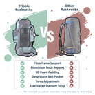 The Walker Pro is the advanced version our best seller Walker series rucksack. The aerodynamic built of the rucksack along with innovative dual aluminum frame and front opening facility makes the Walker Pro a fully equipped rucksack that is built for long duration travelling and hiking. Comes in two size variants the 60 Litres (ideal for upto 14 days) and 80 Litres (for more than 12 days). Exceptional padding, multiple load setting straps, handy pockets on all fronts, hydration bladder and trekking pole compatibility makes it an all-terrain rucksack. Tested by hiking professionals and built upon the experiences of avid backpackers, the Walker Pro has been stitched in our in-house manufacturing by skilled artisans to ensure a rucksack you can trust in all situations. Tripole Gears is a manufacturer of travelling and hiking accessories and provides a 5 year warranty on all defects arising from regular usage.
