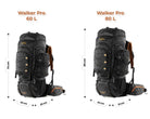 - INTERNAL FRAME Specially casted dual Aluminum rods coupled with a solid fiber frame forms the backbone. Combined with thick padding and various load setting straps, the Walker Pro is equipped with tools to carry heavy luggage for longer durations in different terrains